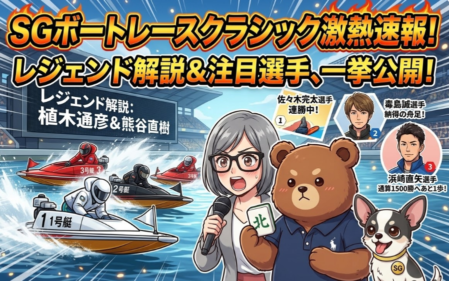 みんな、知ってた?SG第61回ボートレースクラシックが、愛知県のボートレース蒲郡で開幕したんだよ!強豪の選手が52人も集まって、3月29日まで熱い戦いを繰り広げるんだって!もう、想像しただけでワクワクが止まらないよね!🔥