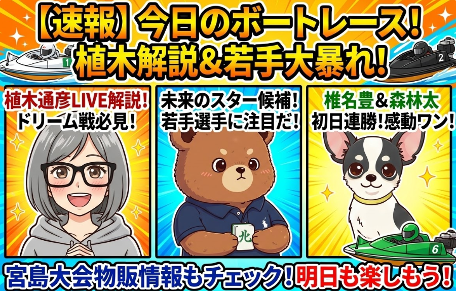 今日のボートレースニュースも、とっても熱かったよね!植木さんの解説で学び、若手選手の成長に期待し、ベテラン選手の快進撃に感動する。そしてイベント情報にワクワクする、これがボートレースの醍醐味だよね!