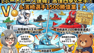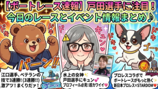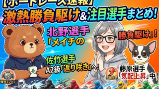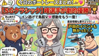 ボートレースの最新ニュースを毎日お届け!SG・G1などの重賞レース結果から選手の最新動向、明日の注目レース予想まで、競艇の旬な情報をプロが端的にまとめます。初心者も通も必見の競艇速報ブログです。