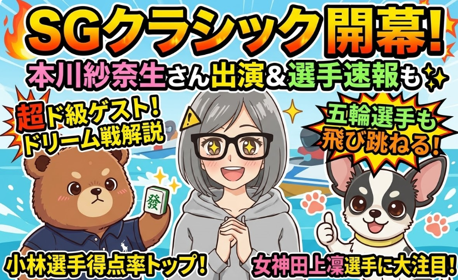 キャー!みんな、これは絶対チェックしてほしいニュースだよ!女子バスケットボール元日本代表の本川紗奈生さんが、ボートレースのスペシャル番組『SPLASH NEXT』に初出演するんだって!しかも、配信されるのは「SG(スペシャルグレード)ボートレースクラシック」のドリーム戦だよ!(SGっていうのは、ボートレースの中で一番格式が高くて、強い選手しか出られない特別なレースのことね!)本川さんがどんなふうに観戦して、どんなコメントをしてくれるのか、想像しただけでドキドキしちゃう!みんなも3月24日20時、一緒にテレビの前で応援しよー!📣